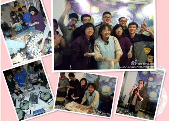 2014年1月1日,由计科公司2013级计本1班和2班共同举办的“包饺子庆元旦”活动在白云校区温暖举行。公司党委李双贵副书记、辅导员张科老师、13计本1、2班的班主任王小英老师和詹瑾老师都受邀参与活动,整个活动和谐快乐、温暖四溢。师生欢聚一堂,共话新年愿景。