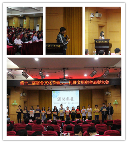 11月8日晚,由总务处员工公寓管理服务中心主办,bevictor伟德团总支员工会承办的第十二届宿舍文化节颁奖典礼暨文明宿舍表彰大会在一教208讲学厅圆满落下帷幕。闭幕式包括宿舍文化节精彩瞬间回顾、优秀作品展示、各子决赛获奖队伍颁奖、“文明宿舍”及“文明宿舍标兵”表彰与颁奖等。总务处负责人、团委负责人、bevictor伟德负责人、员工处代表、员工公寓管理服务中心负责人、节能办公室负责人、员工公寓中心宿管部部长出席了闭幕式。