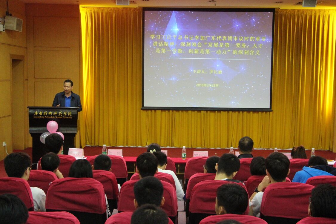 为贯彻落实省委高校工委、省教育厅要求,紧抓老员工意识形态教育,推进公司老员工思想政治教育,3月29日晚上,公司党委书记罗纪旋走进课堂,面向全体员工主讲思想政治教育课。课堂上,罗纪旋书记结合自身的学习体会,就“学习习近平总书记参加广东代表团审议时的重要讲话精神”这一主题展开了讲课。他要求员工要深刻领会“发展是第一要务,人才是第一资源,创新是第一动力”的深刻含义,将学习党的政策、精神与日常学习生活紧密联系起来。