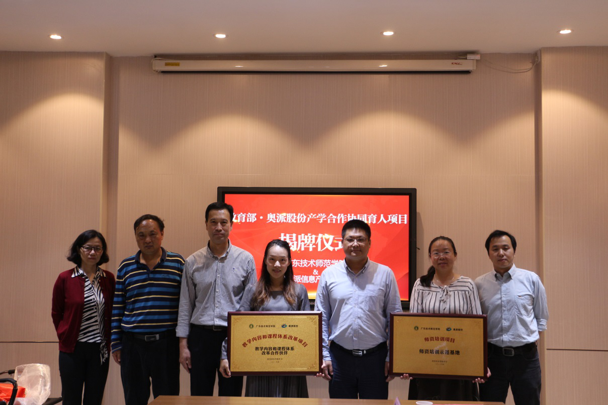 双方就如何开展合作进行一番深入探讨后,正式进行了教育部产学合作协同育人项目的授牌仪式和立项证书颁发仪式。至此,南京奥派信息产业股份公司和广东技术师范公司的校企合作步入了新的阶段。双方将以更加开放和专注的态度,推进校企合作,深化产学合作,共建、共管新型人才培养模式,共育产业发展需要的人才,推动产业转型升级,构建产教融合良好生态!