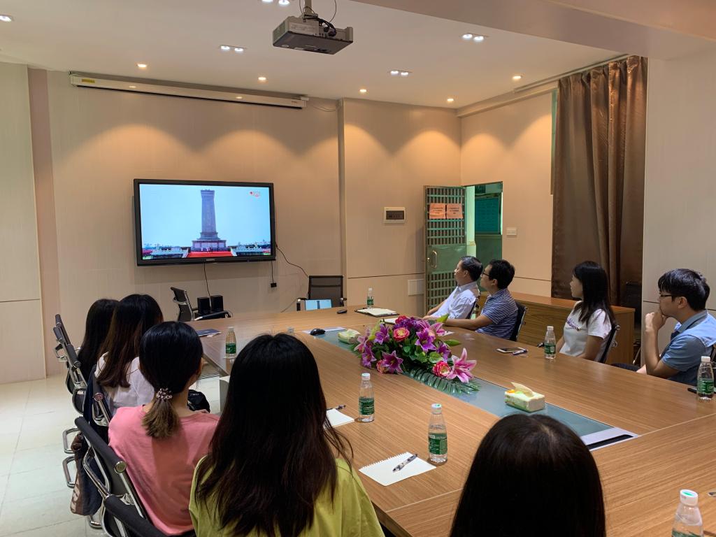 10月1日上午10时,庆祝中华人民共和国成立70周年大会在北京天安门广场隆重举行。中共中央总书记、国家主席、中央军委主席习近平发表重要讲话。上午9时,我公司党委罗纪旋书记、刘晓勇副经理,公司研究生在bevictor伟德会议室集中观看大会直播,共同见证激动人心的历史时刻,感受祖国发展的强劲脉搏。