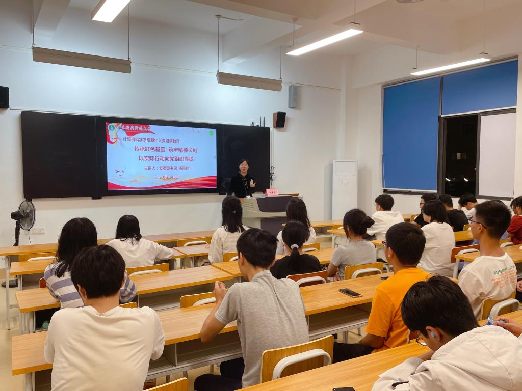 杨燕佳副书记以“传承红色基因、筑牢精神长城”为题为新生讲授入党启蒙教育专题党课。她围绕学史明理、学史增信、学史崇德、学史力行的目标要求,通过回顾百年党史,带领新生就“传承红色基因”进行足迹追寻、现实追思和使命追问,引导新生循着红色足迹,凝聚奋进力量,筑牢精神长城,将个人价值追求融入到党和人民的事业中,求真务实,知行合一,用智慧和汗水书写属于自己的人生华章。