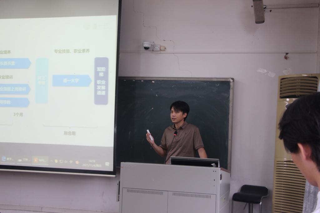 开幕式结束后,举办企业导师面对面讲座,广州道一信息科技有限公司人力资源总监陈新,分享了目前行业的发展前景、企业的用人需求、如何明确未来的学习方向以及应届生的职业发展路径。蓝桥杯大赛官方讲师高淦嵩就蓝桥杯大赛、优秀选手的职业发展前景以及如何备战蓝桥杯进行了宣讲。两位企业导师以自身职场经验和思考为基础,向同学们贡献了一场精彩的职业规划课,对同学们了解当下时代需求,做好职业规划提供了巨大的帮助。