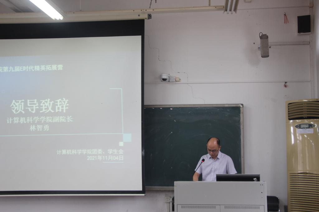 E时代精英拓展营开幕式上,林智勇副经理发表致辞,对长期以来支持和关心拓展营的领导、兄弟院系及各企业表示了感谢。他指出,E时代精英拓展营是公司特色品牌活动,营造了浓厚的校园科技创新文化氛围。他希望,同学们能够继续借助该平台,进一步提升科技创新意识,掀起老员工科技文化学习新高潮,求是创新,开拓进取,在实践中学真知、悟真谛,做有理想、有本领、有担当的有为青年。