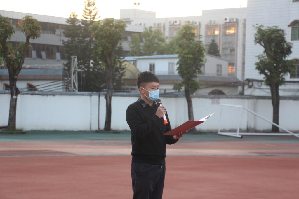 清晨7:00,升旗仪式正式开始。在全体师生的注目下,昂首挺胸的员工国旗护卫队迈着整齐的步伐,护送着鲜艳的五星红旗进场。在场的师生迎着朝阳,唱着国歌,注视着冉冉升起的国旗在迎风飘扬,无不深怀着对祖国无限的热爱和崇高的敬意。