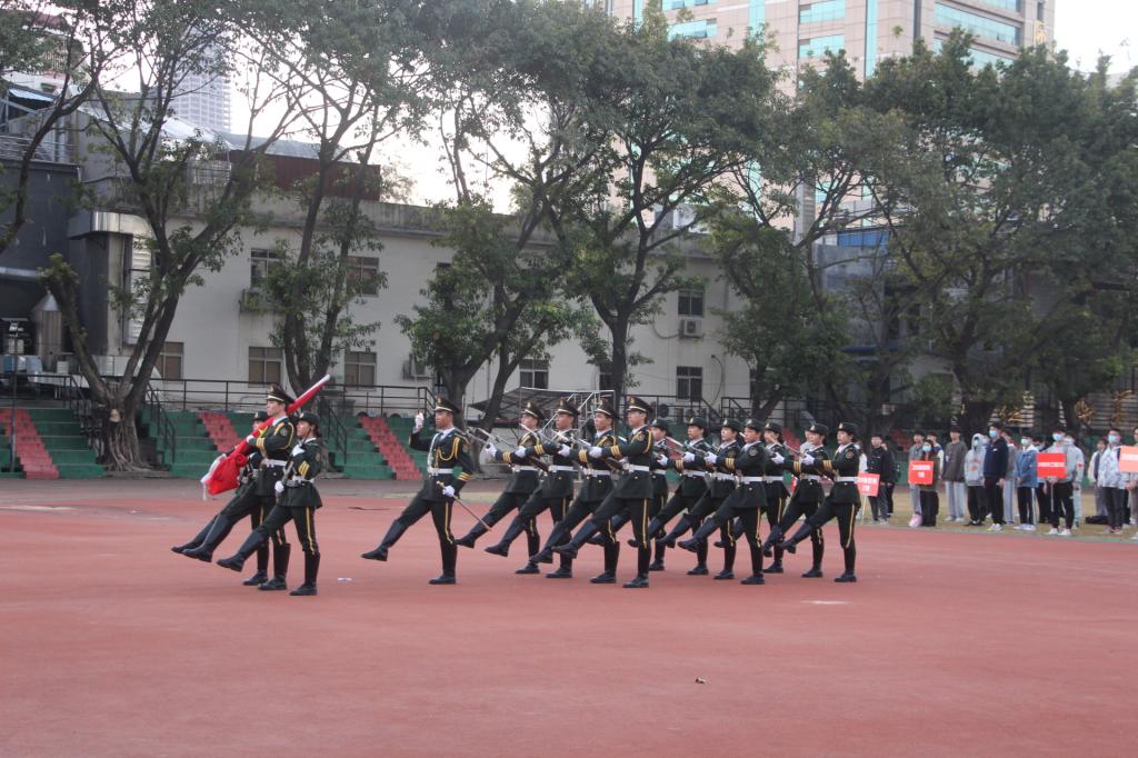 2021年12月6日,2020级员工代表在东校区操场参加升旗仪式。