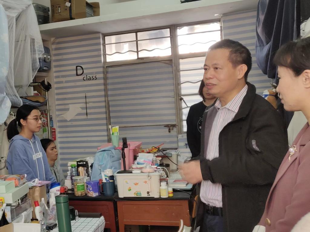 2021年12月9日下午,为深入基层了解员工,常态化联系员工,公司党委书记罗纪旋、党委副书记杨燕佳、19电商师班主任盘茂杰以及辅导员涂青云、李芷君一同走访员工宿舍,了解员工学习生活情况并进行慰问。