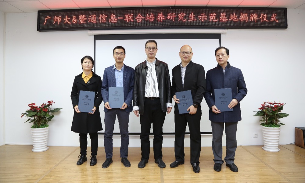 2021年12月23日,公司与广东暨通信息发展有限公司(以下简称“暨通信息”)共建的“广东省联合培养研究生示范基地”在暨通信息正式揭牌,公司研究生院经理陈泳竹、公司党委书记罗纪旋、经理赵慧民、副经理陈荣军、基地项目负责人贾西平,广州无线电集团党委委员、副总经理、广电平云资本管理有限公司董事长、广东暨通信息发展有限公司董事长李瑜、广东暨通信息发展有限公司总经理张帆、副总经理何坚等公司高管共同出席了揭牌仪式。