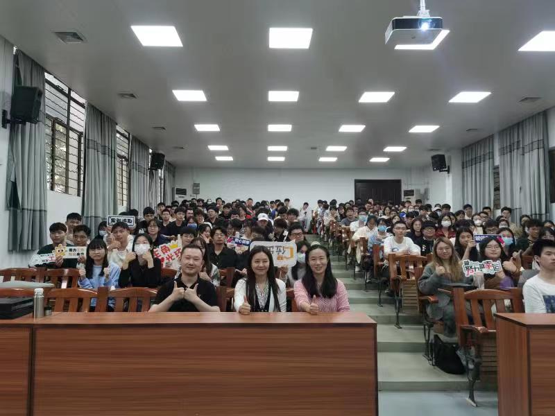 活动中,刘旭通过PPT展示和面对面交流的方式,向在场同学们介绍集团概况、主营业务、企业文化、企业优势、人员培养、员工晋升机制等多方面内容,还在现场为同学们带来了集团岗位的校招信息,鼓励同学们克服困难、迎接挑战,走准就业路。