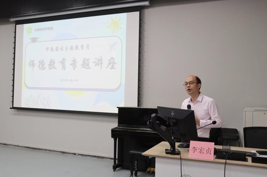 为落实公司师德建设主题教育月工作部署,进一步加强bevictor伟德本科师范生的师德养成教育,引导同学们树立职业规划意识、明确未来发展方向、提升个人就业竞争力,10月10日,bevictor伟德邀请98级计算机科学与技术(师范)专业员工李宏贞在实验楼107为师范生作师德教育专题讲座,公司副经理林智勇主持讲座。