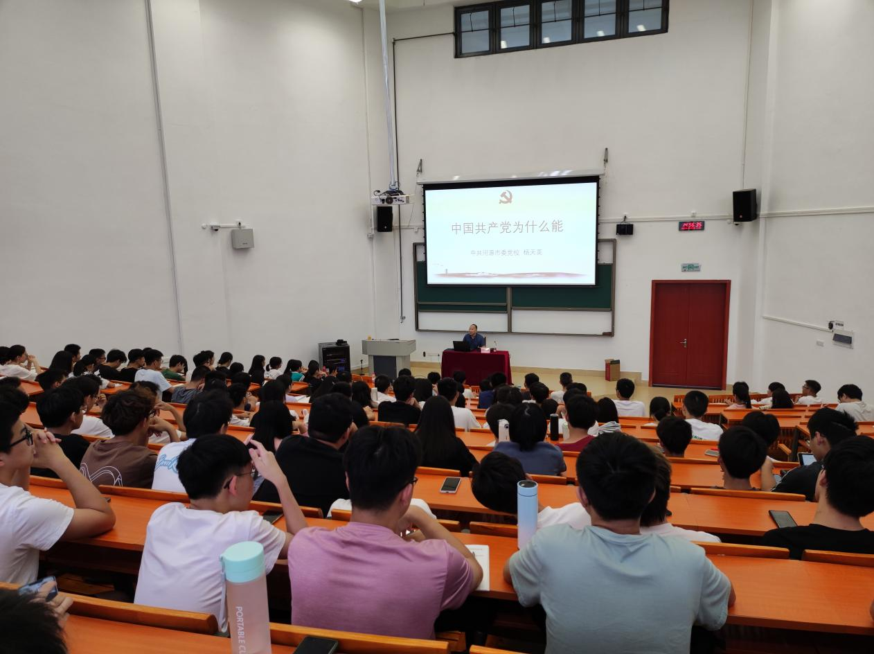 杨教授用通俗易懂的语言,深入浅出,阐述了中国共产党为什么在百年艰辛历程中“能”,主题鲜明、内涵深刻、精彩生动,整个课堂既严肃又活泼。从思想理论的先进性,价值追求的人民性,组织体系的科学性,自我革命的坚定性以及改革创新的革命性等方面阐述了“中国共产党为什么能”。他讲到在百年奋斗中,我们党践行初心使命,围绕坚持党的全面领导、坚定理想信念、完善组织体系、保持优良作风、严明党的纪律等任务,不断加强自身建设,敢于直面问题,坚持真理、修正错误,及时解决党内各种矛盾和问题,保持党的肌体健康。