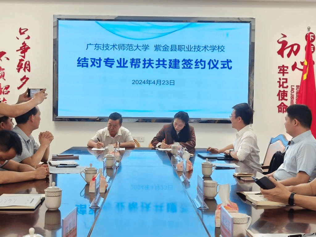 4月23日公司与紫金县职业技术公司签订结对专业帮扶共建协议,会后与相关专业老师进行了座谈会。会上双方领导老师就党建引领、专业建设、教研科研、人才培养等方面进行了深入交流。希望通过此次专业帮扶共建,加强双方交流,实现共同进步。