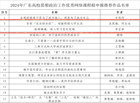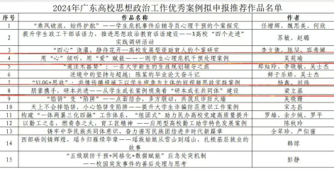近日,根据《关于开展2024年广东高校思想政治工作优秀论文、优秀案例、优秀网络课程推选展示活动的通知》,经各部门申报、公司审核与专家评审,拟推荐公司辅导员吴苑瑜、梁立基所撰写的《用“心”倾听,用“爱”赋能-一则员工心理危机干预处理案例》和《朋辈携手,研本共进-从员工成长案例视角看“研本成长共同体”建设》2篇案例及辅导员吴苑瑜、李芷君所拍摄的《告别“淡淡综合症”,迎接积极老员工活》和《铁律铸魂:深入学习党纪党规》2份网络视频作品至省级评审。