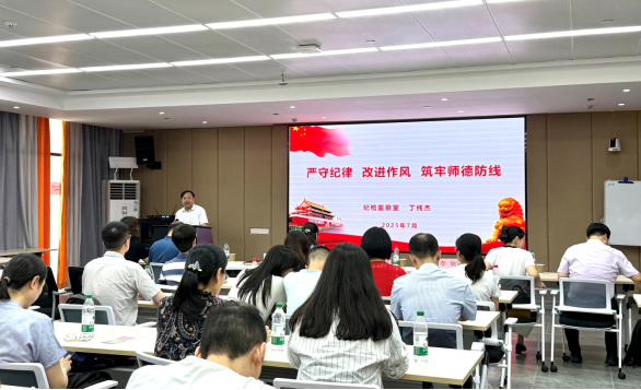 丁纯杰为全体导师作了《严守纪律 改进作风 筑牢师德防线》的专题报告,结合中央八项规定精神学习,强调研究生导师作为一名教师应坚持底线思维,严守纪律,改进作风,并以贴近工作、生活的多个案例诠释导师应当遵守的行为规范。