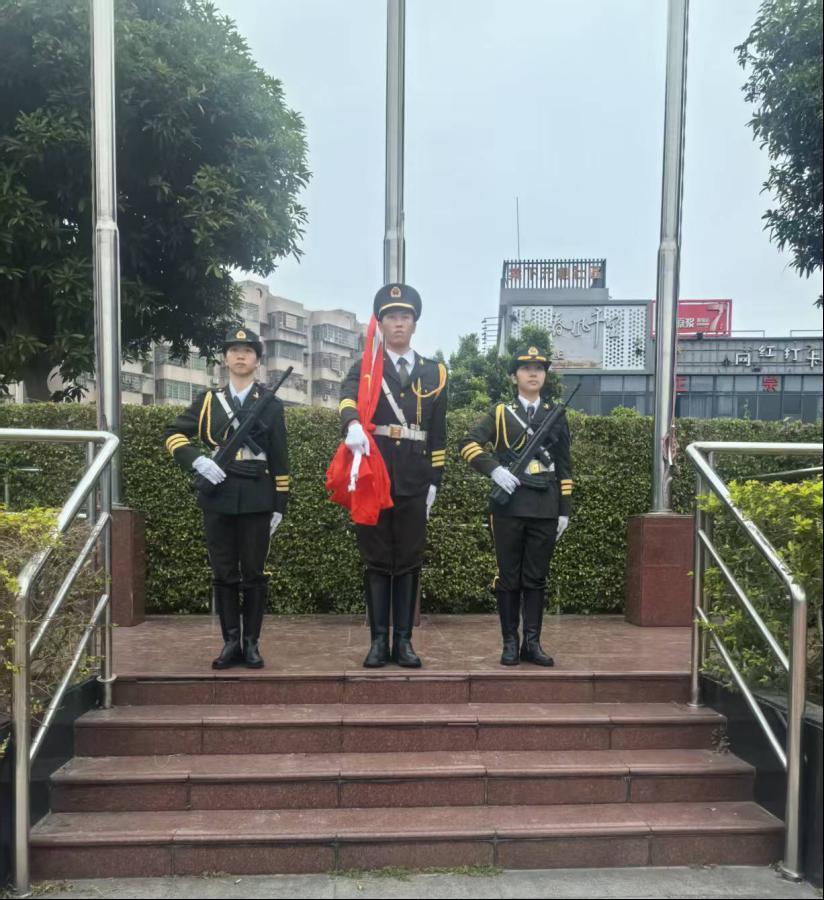 晨光熹微中,师生整齐列队、肃立致敬。伴随着雄壮的国歌声,五星红旗冉冉升起,全体人员面向国旗行注目礼,崇敬之情与使命担当在现场凝聚升华。