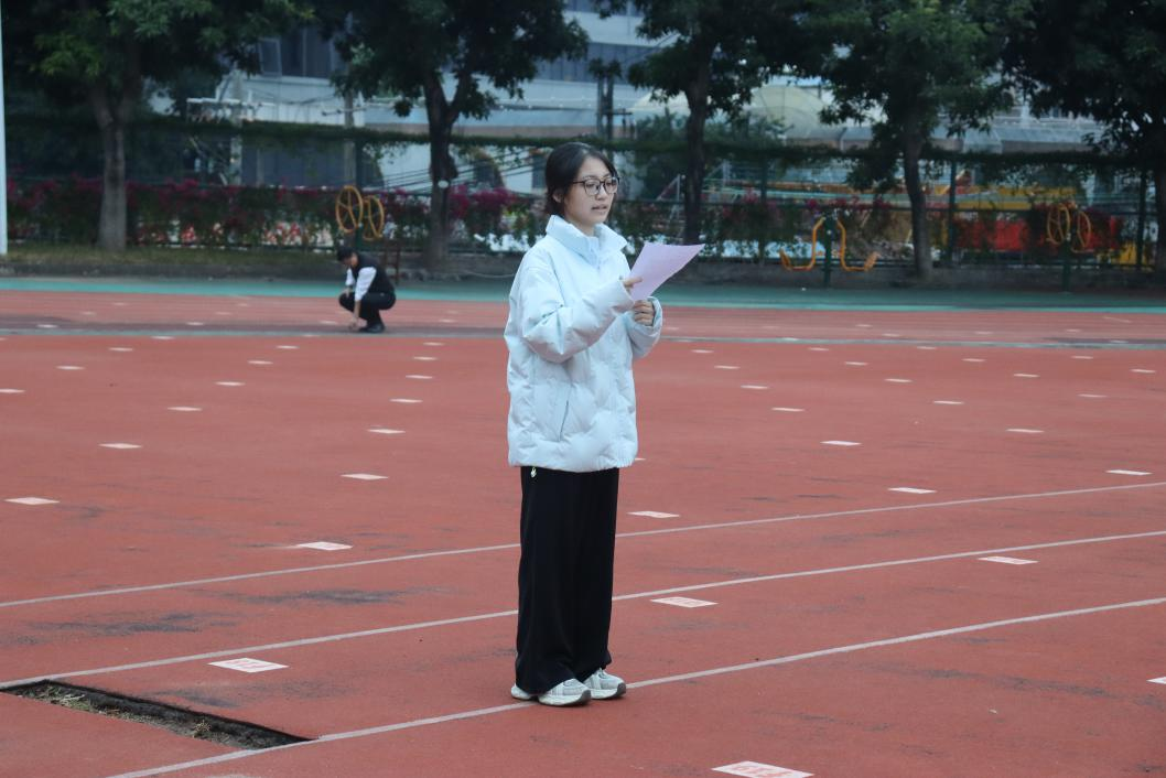 升旗仪式结束后,优秀员工代表曾颖仪发言讲话。她结合自身的学习实践和时代背景,深刻阐述了青春力量与强国建设之间的紧密联系。她谈到,当代青年正值国家蓬勃发展之际,当主动肩负起民族复兴的重任。她呼吁同学们树立远大理想,主动融入国家发展大局,以课堂专注研学、图书馆深耕细悟、科研中攻坚克难的实际行动追逐梦想,用责任与担当诠释青春价值,为国家强盛厚积薄发。她的发言真挚有力,引发师生强烈共鸣。