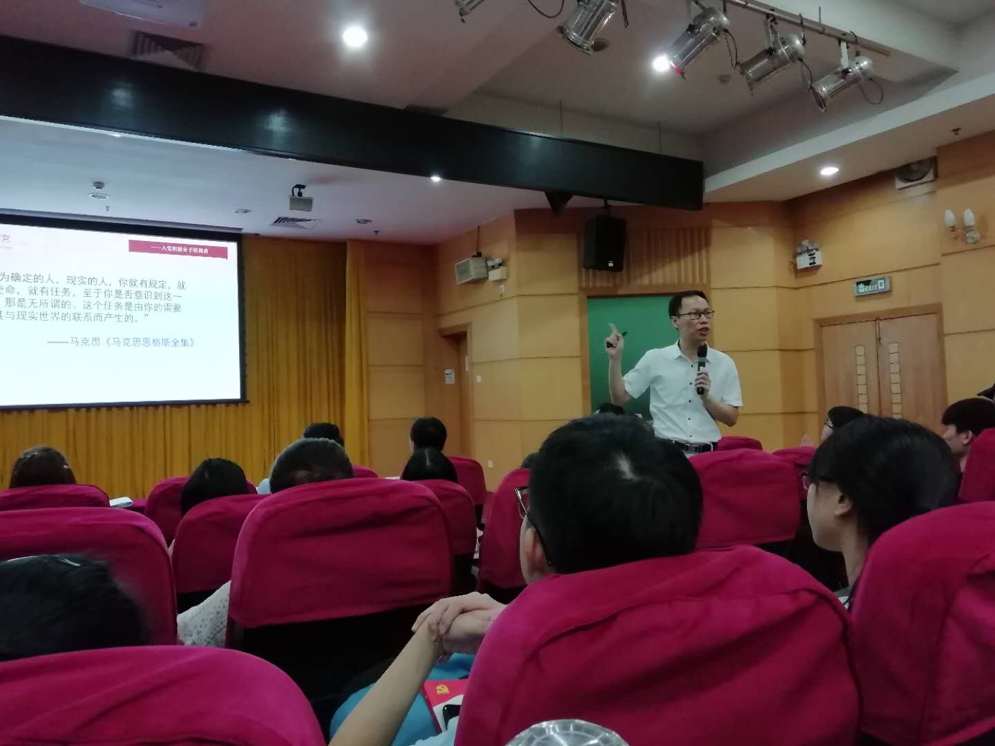 5月11日,2019年上半年入党积极分子培训班第三讲在一教208举行。公司入党积极分子全员参加。