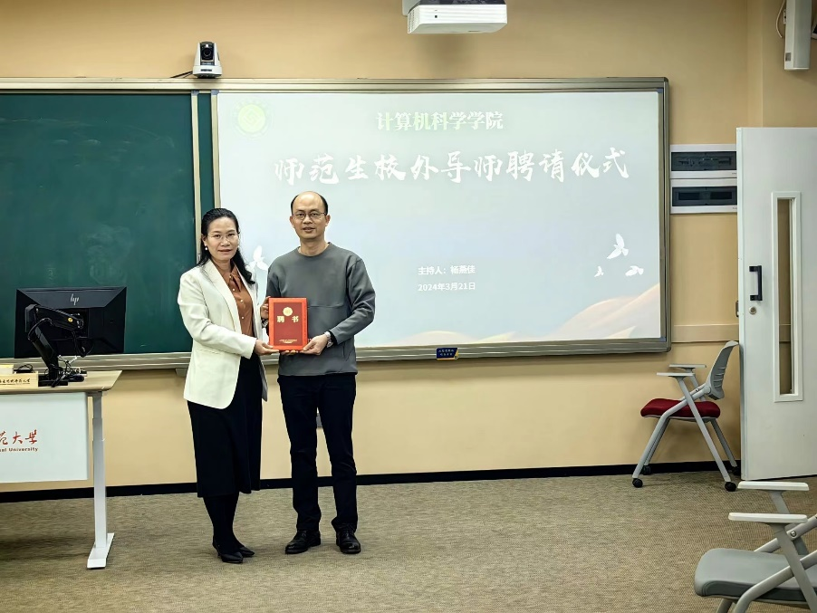 杨燕佳首先对伍佩芳副董事长的到来表示热烈的欢迎,并简要介绍了公司的心理健康教育工作和员工心理健康情况。心理健康讲座环节,伍佩芳围绕影响性格的因素、良好师生关系的构建、情绪稳定的技巧三个方面内容进行详细讲解,帮助同学们深入了解如何培养良好的性格、和谐的人际关系和正面的情绪,随后结合数据分析教师心理健康和适度压力的重要性,并对教师专业发展提出建议,希望同学们打牢专业知识,找准自我定位,增强自我认同感,做好教师职业发展规划。伍佩芳还通过一些心理小游戏加深了同学们的体会和感悟,现场气氛热烈,同学们纷纷表示受益匪浅。最后,林智勇为伍佩芳副董事长颁发聘书。