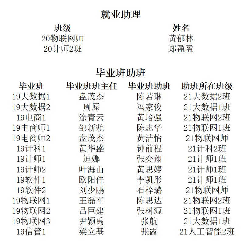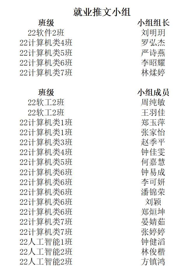 经为期30天的干事培训以及毕业生事务的有序进行,现公布计科就业干事名单: