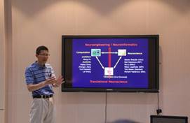 在历时1个半小时左右的讲座中,梁教授首先介绍了研究目标,即,如何通过计算手段处理不同的认知任务来探索视觉感知的神经机制;随后,介绍了一组信号处理方法,尤其是因果模型和机器学习;最后,重点探讨了如何将这些方法用于评估脑网络动力学行为以及它们在神经信息学和脑动力学成像中的可能应用。梁教授的研究内容属于前沿交叉学科,所取得的一系列研究成果对认知科学、类脑计算、深度学习等相关领域的同行都有很高的启发和借鉴意义。梁教授深入浅出的讲解深深地吸引了在场的师生们,在场的师生就讲座的相关内容与梁教授展开了热烈的互动讨论。除了学术交流,梁教授还针对研究生提出的问题,就美国私立大学和公立大学的优缺点作了对比分析,加深了师生们对美国高等教育的了解和认识。最后,赵慧民教授对讲座进行了总结。