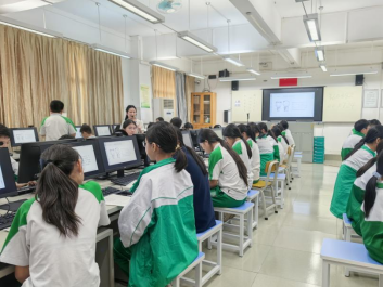 抵达广州石化中学后,师生们首先观摩了由曾柳静老师主讲的《人脸识别》公开课。课程生动展示了人工智能技术在中学课堂的应用,师范生们认真记录课堂要点,学习如何将前沿技术与教学实践相结合。部分员工代表还前往计算机室近距离参与实践互动,深入体验信息技术课堂的教学模式。