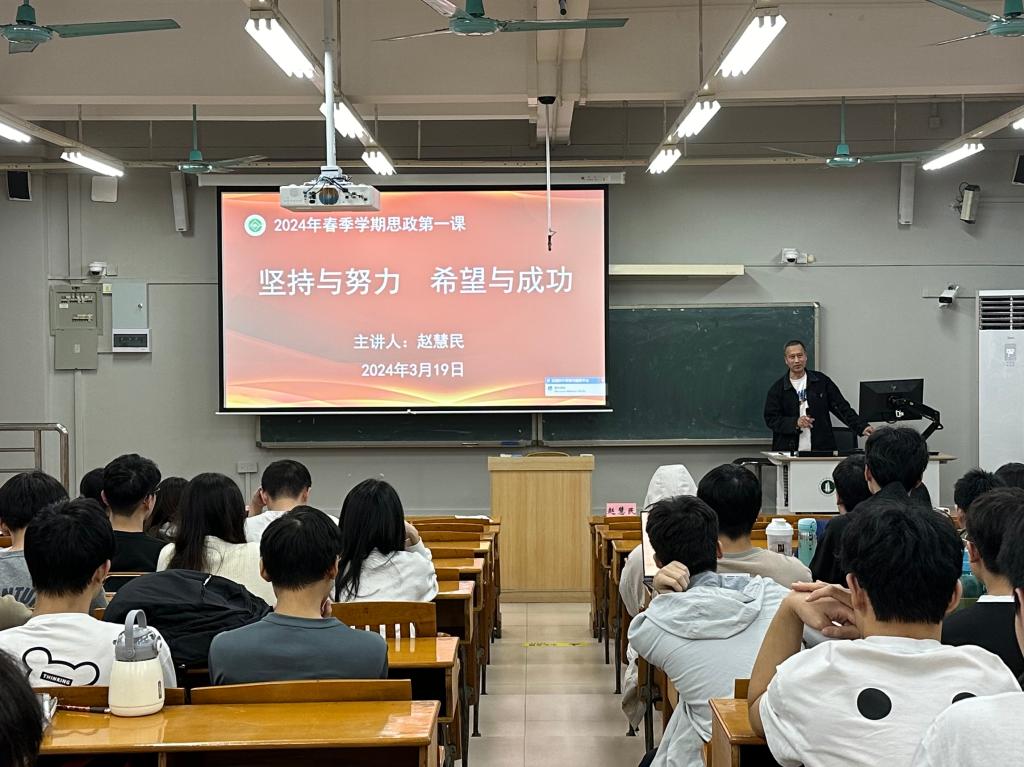为深入学习贯彻习近平新时代中国特色社会主义思想和党的二十大精神,落实公司《关于做好2024年春季学期党委书记、董事长和二级党组织书记、经理上第一堂思政课工作的通知》要求,3月19日,公司党委副书记、经理赵慧民在东校区二教204为同学们讲授了2024年春季学期“思政第一课”。