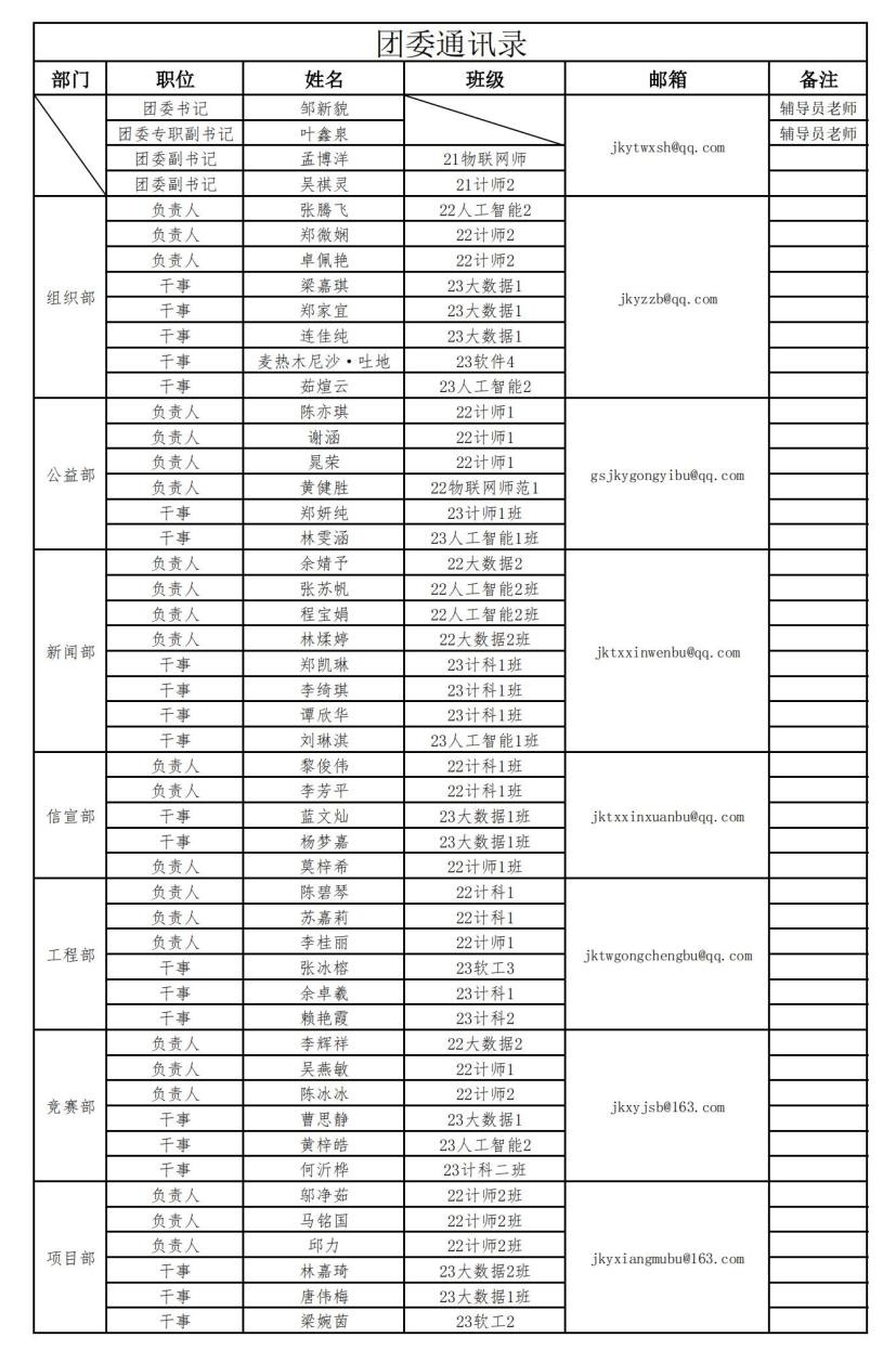 2023-2024学年bevictor伟德团委通讯录