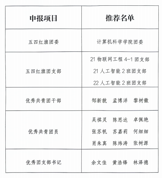 五四评优推荐名单的公示