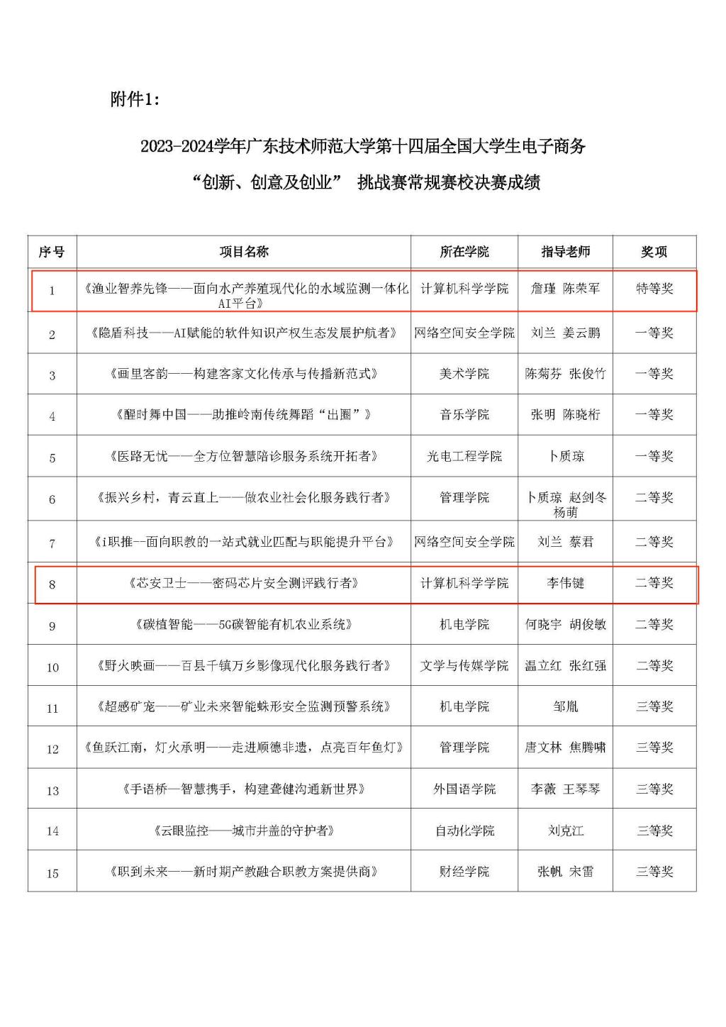 近日,公司第十四届全国老员工电子商务“创新、创意及创业”(简称:三创赛)挑战赛校决赛已圆满结束。经过各团队激烈角逐,专家现场评审,公司项目《渔业智养先锋——面向水产养殖现代化的水域监测一体化AI平台》斩获常规赛特等奖(指导老师:詹瑾,陈荣军),《芯安卫士——密码芯片安全测评践行者》斩获常规赛二等奖(指导老师:李伟键)。