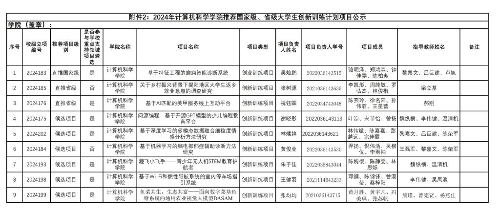 根据《关于公布公司2024年老员工创新创业训练计划省国级项目遴选工作方案的通知》要求,经团队申报、专家评审,拟推荐“基于机器视觉的自动识别跟踪无人机”等9个项目为2024年度省国级老员工创新创业训练计划项目,现予以公示。(项目详情见下表)