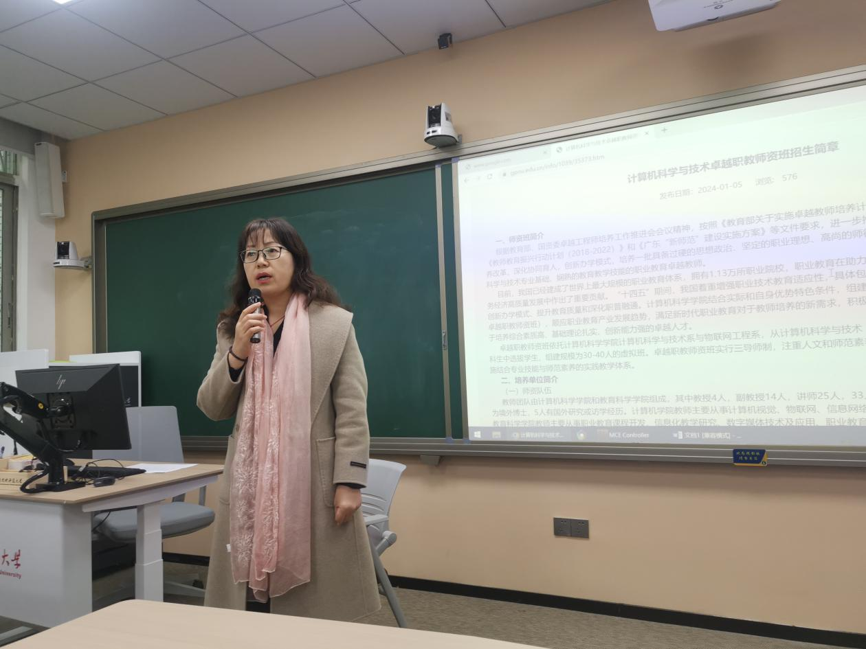 魏纵横副主任作为21级计科卓越职教团队班的负责老师,主要从卓越职教团队班课程设置如何体现“卓越”的角度展开阐述,将新开设的3门课程对应卓越职教团队应该具备的教学能力、管理能力(尤其是班主任管理)、技术能力(尤其是人工智能技术),通过这三门课程的设置,加上高校——中职——企业“三导师”制的教育实习,卓越职教团队班旨在全面培养员工的教育素养和专业能力,使他们成为具备卓越教学、管理和技术能力的优秀教育工作者,为教育事业的发展贡献力量。