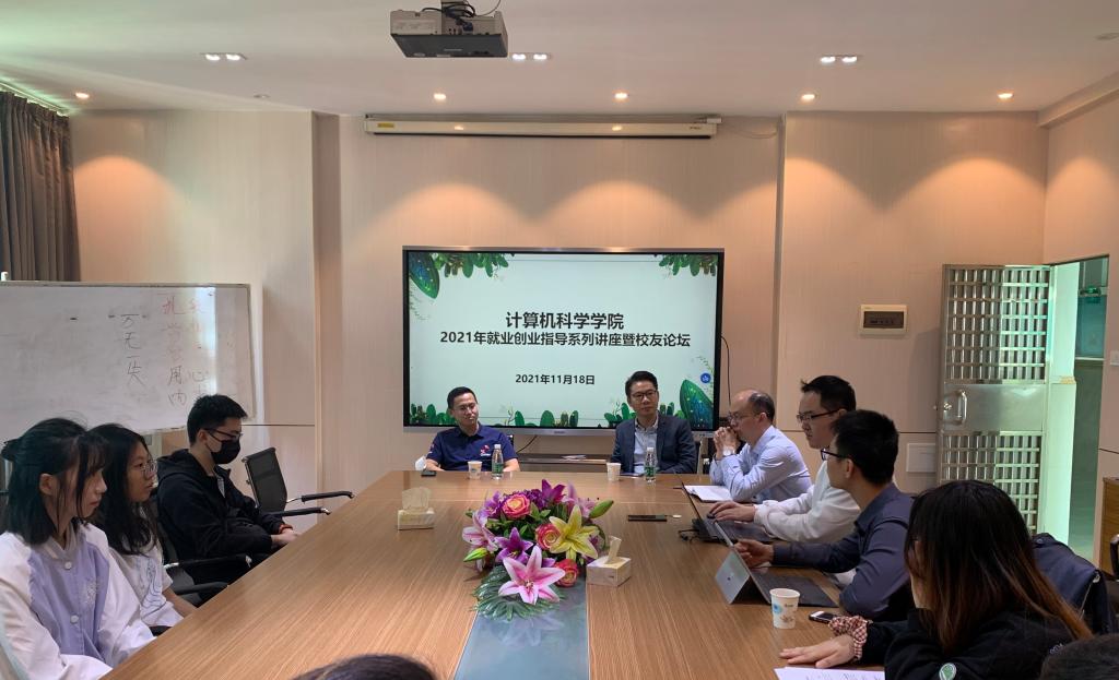 为加强2022届毕业生对计算机行业现状和职业前景的认识,帮助同学们树立正确就业创业观,更好推进2022届毕业生就业工作,11月18日,bevictor伟德在一教1212会议室召开就业创业指导讲座暨员工论坛。2012届优秀员工、广州米袋软件有限公司创始人、总经理吴永乐,广州市品高软件股份有限公司副总经理吴盈佳应邀参加。公司副经理林智勇、毕业班班主任及2022届毕业生代表参加本次讲座。讲座由软件工程系主任梁鹏老师主持。