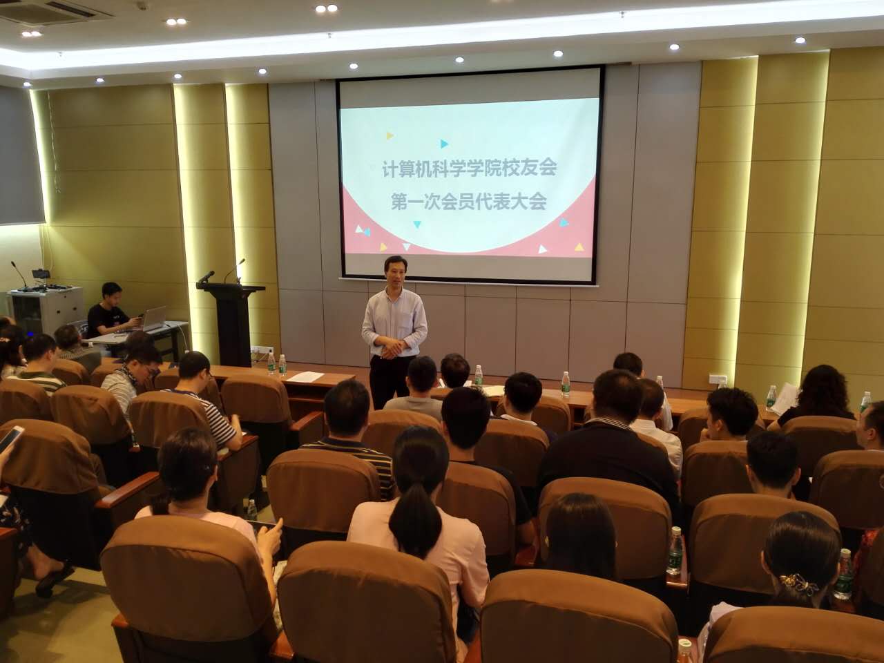 会议由公司党委罗纪旋书记主持。公司赵慧民经理进行开场致辞。罗书记代表组委会作了公司员工会筹备工作报告,并介绍了与会代表。通过推荐和表决,大会选举产生了以罗纪旋为会长的理事会成员。罗纪旋会长代表第一届员工会理事会发表了热情洋溢的讲话,首先,他对公司和公司的发展历史及现状进行了简要的回顾和介绍,接着,他重点指出,计科院及员工会的工作将致力于“搭建四个平台、共建六种资源”。“四个平台”是指搭建员工交流平台、员工互助平台、员工献计献策平台、员工捐资助学平台;“六种资源”是指共建员工的“品牌资源”、“智力资源”、“人脉资源”、“财富资源”、“精神资源”、“思想资源”。